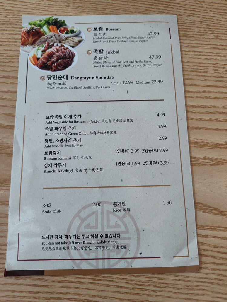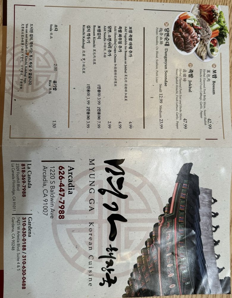In the heart of Arcadia, Myung Ga Haejangguk offers a cozy setting for traditional Korean soups. Customers rave about the flavorful bossam, with its tender pork slices and accompanying sides that create a perfect combination. The sullangtang boasts a rich and seasoned broth with tender beef, while the gamja tang impresses with its hearty and spicy flavors. The portion sizes are generous across all dishes, ensuring a satisfying meal or leftovers to enjoy later. The attentive service and refillable side dishes add to the overall dining experience. While the ambiance may benefit from a refresh, the standout food quality more than compensates for any minor drawbacks. For those seeking comforting Korean cuisine with large portions and attentive service, Myung Ga Haejangguk delivers an authentic and delightful dining experience.